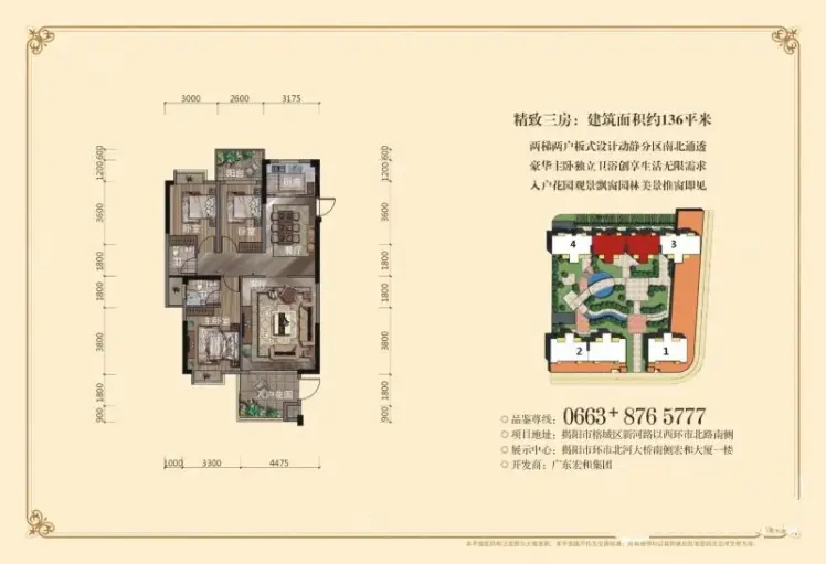 揭阳和盛花园3室2厅2卫1厨136.00㎡户型图-易火棋牌