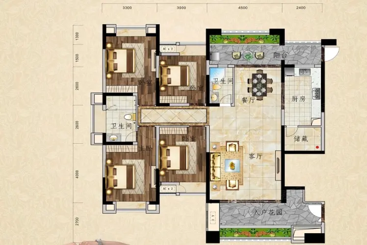 揭阳东方明珠4室2厅2卫1厨181.73㎡户型图-易火棋牌