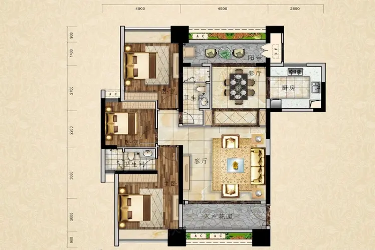 揭阳东方明珠3室2厅2卫1厨137.03㎡户型图-易火棋牌